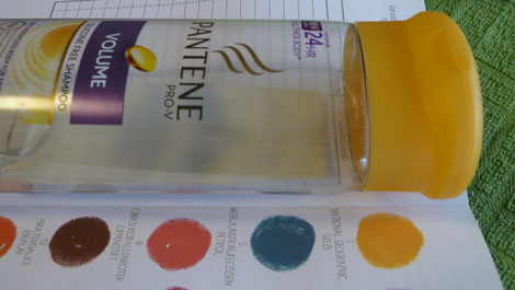 Und weiter gehts mit zwei Farben, die mich fast zur Verzweiflung gebracht hätten ... aber ich hab sie gefunden und zeige euch deshalb Postits, die es hier, wie ihr ja schon ganz oben sehen konntet, in viel mehr Farben als bei uns zu Hause gibt. Und ihr seht die Verpackung meiner Kaffeefilter - letztlich also doch noch nicht nur etwas Alltägliches, sondern auch besonders Wichtiges.