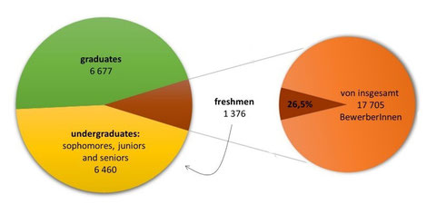 Dazu kommen noch die 505 StudentInnen am Oxford College, wo 40% der BewerberInnen – insgesamt 6 889 – einen Studienplatz bekommen haben. Zur großen Emory-Familie gehören also über 15 000 StudentInnen, die nicht nur aus allen Ecken der USA, sondern von der ganzen Welt kommen. Einen für alle repräsentativen Eindruck vermittelt die Zusammensetzung der StudienanfängerInnen in diesem Studienjahr, d.h die Abschlussklasse 2017, wie diese „Gruppe“ hier (weil alle, anders als bei uns, in der gleichen vorgegebenen Zeit ihren Abschluss machen) auch genannt wird.