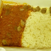 ... mit Reis und Rindfleisch.