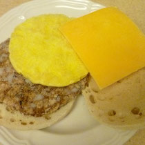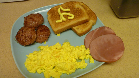 Und hier gibt noch ein paar weitere Variationen. Und hier wird es wirklich amerikanisch, denn die Butter kommt aus der "Flasche" zum Drücken, die Sausage ist bereits fertig für die Pfanne und das Ei kommt aus dem Packerl - nur das Eiklar, um genau zu sein, verfeiert mit Käse. Besser als ich gedacht hab, aber an die Nummer 1 kommt es einfach nicht heran!!