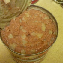 Das kann man aber umgehen und auf Fleisch aus der Dose zurückgreifen. Dazu kann ich nur sagen: pfuuuuuuuuuui, denn ich habs nach dem ersten Bissen gleich in den Abfluss geleert. Nun weiß ich wenigstens, wie Katzenfutter schmecken muss, riechen tut es jedenfalls so ...