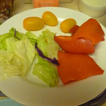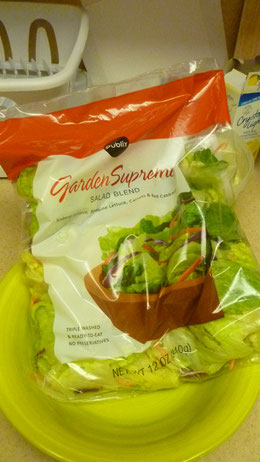 Beim Dinner darf auch Salat nicht fehlen und diesen gibt es, wie ja auch bei uns, fertig aus dem Sackerl.
