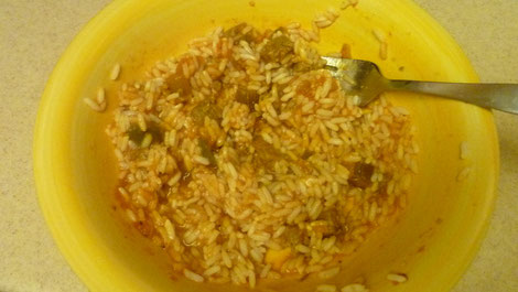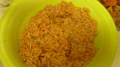 Was ich hier jedenfalls zum ersten Mal gesehen und gegessen habe, ist Reis mit Nudeln oder auch Nudeln mit Reis ... wäre nie auf die Idee gekommen, diese beiden zu mischen :-)).