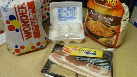 Man nehme Toastbrot, Eier, Bacon und Kartoffel - und dann braucht man nur noch 3 Pfannen ...