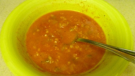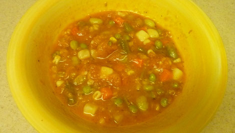 Das klassische Dinner beginnt auch hier mit Suppe ... und das gar nicht so anders als bei uns, einzig, dass sie aus dem Packerl kommt und bei Weitem nicht so köstlich schmeckt :-)).