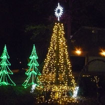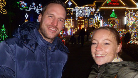 in Christmas in the Grove, einem Vorgarten, der nicht nur hell erleuchtet ist, sondern die Lichter auch noch passend zur Musik zu tanzen scheinen.