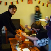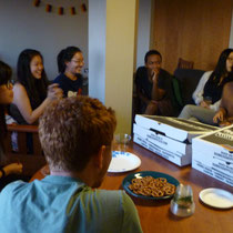 Und wir hatten viel Spaß, haben Pizza gegessen und Teamwork gespielt, ein Spiel, in welchem Teams vorgegebene Begriffe erklären müssen, indem sie, ohne sich vorherabgesprochen zu haben, gemeinsam einen Satz bilden, wobei jeder, abwechselnd, immer nur ein Wort beisteuern darf.