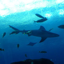 Das tolle hier ist aber, dass es nicht nur all das gibt, was wir aus Schönbrunn oder dem Haus des Meeres kennen, sondern dass es, wie es sich für das größte Aquarium der Welt schließlich auch gehört, auch richtig große Fische wie zum Beispiel Walhaie, die schon mal gut über 10m lang werden, gibt. Und die meisten sind im größten Becken, das alleine ganze 24.000m³ fasst, vereint.