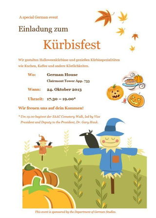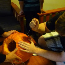 Und am Montag ging es dann auch schon wieder los: Unterricht, Kurse, Vorträge – der ganz normale Alltag. Und neben dem Höhepunkt eines Vortrags von Ben Brumfield in der ersten Wochenhälfte, einem Journalisten bei CNN, der uns und v.a. den StudentInnen von den Zusammenhängen seiner Jobs und der Tatsache, Deutsch sprechen zu können, erzählt hat, haben wir am Donnerstag ein Kürbisfest gefeiert.