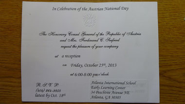 Nach dieser kleinen ersten Einstimmung, die kommende Woche steht ja ganz im Zeichen von Halloween, war ich dann gestern auf einen Empfang des österreichischen Konsuls in Atlanta eingeladen, um den heutigen Nationalfeiertag zu feiern.