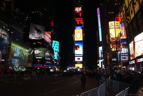 Nach so viel Sport, haben wir dann einen Abstecher zum Times Square gemacht. Und da war bereits einen Tag vor Silvester die Hölle los. Die Stimmung war super, denn die Vorbereitungen für den Ball Drop waren im vollen Gange und einzelne Gruppen haben schon für den großen Tag geprobt. Und wenn es dunkel ist, sieht der Times Square auch erst so richtig toll aus!