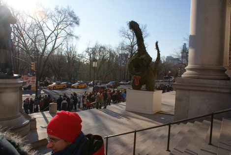 Es war wunderschön, wenn auch richtig kalt, sodass wir gleich danach zurück in unser gemütliches Bettchen gehuscht sind :-). Und am nächsten Tag war es dann auch schon so weit: Silvester. Eigentlich wollten wir schon am Vortag ins American Museum of Natural History, da uns die Schlange mit schätzungsweise mindestens 700 Leuten aber abgeschreckt hat, haben wir diesen Besuch auf den letzten Tag des Jahres verschoben. Und auch da hatten wir Glück, denn hätten wir uns nicht in der Uhrzeit geirrt und werden nicht eine Stunde zu früh, sondern erst zur Öffnungszeit um 10.00 gekommen, hätten wir auch an diesem Tag warten müssen. Und diesmal muss ich nicht schätzen: als wir das Museum unter den Ersten um 10 betreten haben, habe ich gut 500 Leute hinter uns gezählt.