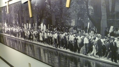 Während Martin Luther King jr. unzählige Male im Gefängnis saß, war er 1964 nicht nur Mann des Jahres des Time Magazine, sondern erhielt auch den Friedensnobelpreis. Und er kämpfte unaufhaltbar – in der Kirche und auf den Straßen. Die Rassentrennung wurde per Gesetz schließlich aufgehoben, aber immer noch gab es viel zu tun!