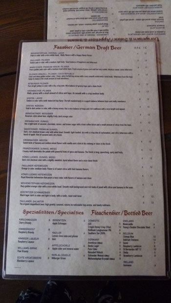 Und diesmal hab ich auch die Speisekarte fotografiert, damit ihr auch einmal selbst sehen könnt, was hier über dem Teich als deutsche Kultur verstanden wird.