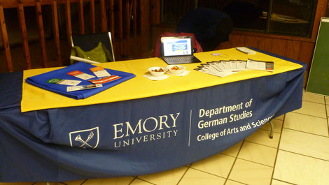 Mmmhhhhhh … da waren wirklich leckere Dinge dabei!!! Mit vollem Magen gings dann auch zu unserer eigentlichen Aufgabe hier – der College Fair, bei welcher sich die Schüler und Schülerinnen über unterschiedliche Colleges und Universitäten in Georgia informieren konnten. Natürlich jene, die auch Deutsch anbieten: Mercer, Georgia State and Kennesaw State University.
