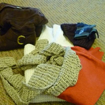 Ja, und so habe ich meine Sachen zusammentragen: Häferl, Wintersachen, Bücher, ...