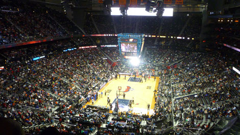 Die Philips Arena fasst gut 20.000 BesucherInnen und ist das Zuhause der Atlanta Hawks. Genau dieses Spiel haben wir deshalb gewählt, weil an diesem Abend ein Emory Shuttle dorthin gefahren ist. Überraschend war deshalb die Tatsache, dass die Hawks gegen die Knicks spielten, jene Mannschaft, deren Stadion ich ja erst vor Kurzem in New York besichtig habe. Toll, denn so hatte ich zumindest eine gewissen Beziehung zu den Mannschaften (Pssst: mehr als die beiden kenne ich nämlich nicht), auch wenn ich patriotisch natürlich zu den Hawks gehalten habe.