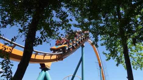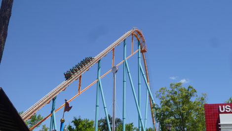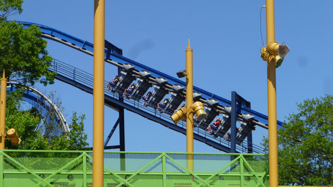 Anders als die Universial Studios oder Disney Land handelt es sich bei dieser Kette um wirklich reine Achterbahnparks, d.h., dass hier einfach auf Geschichten verzichtet wird und die rides im Vordergrund stehen. Und die waren wirklich super, denn ihr wisst ja, wie sehr ich auf Achterbahnen stehe :-)). Schade ist immer nur, dass einem recht schnell die Lust vergeht, wenn man überall lange warten muss und so haben auch wir, Terez und ich, zwischen 10 und halb 6 nur 4 Achterbahnen geschafft. Denn nach 2 kurzen Schlangen haben wir uns für die letzten beiden Bahnen 2,5 und 1,5 Stunden die Beine in den Bauch gestanden. Aber das wars wirklich wert, denn hier gibt es nicht nur die faden traditionellen Achterbahnen, sondern jede versucht durch "Kleinigkeiten" anders zu sein. Und so gibt es Holzbahnen, oben und unten geführte Bahnen, Steh- und Fliegbahnen, ... Hier jedenfalls ein paar Eindrücke von gaaaaaaanz viel Adrenalin :-)).