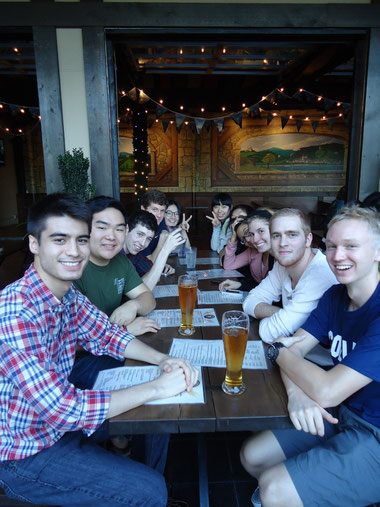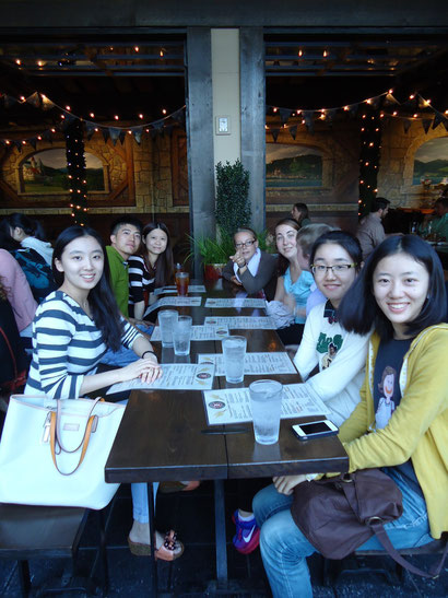 Und wie ich in der Einleitung ja auch schon geschrieben habe, waren wir diese Woche mit einigen unserer StudentInnen im Biergarten essen. Passend zum Unterrichtsthema Essen, hat sich eine meiner Arbeitskolleginnen die Mühe gemacht, einen Ausflug für unserer Deutschanfängerklassen zu organisieren und da sind wir natürlich gerne mitgefahren. Auf freiwilliger Basis natürlich und so waren wir von insgesamt 5 Klassen schließlich 23 Leute. Und es war ein gelungener Abend, den wir bei gutem Essen – ich hab natürlich Wiener Schnitzel gegessen, wobei für den Apfelstrudel leider kein Platz mehr war – genossen haben.